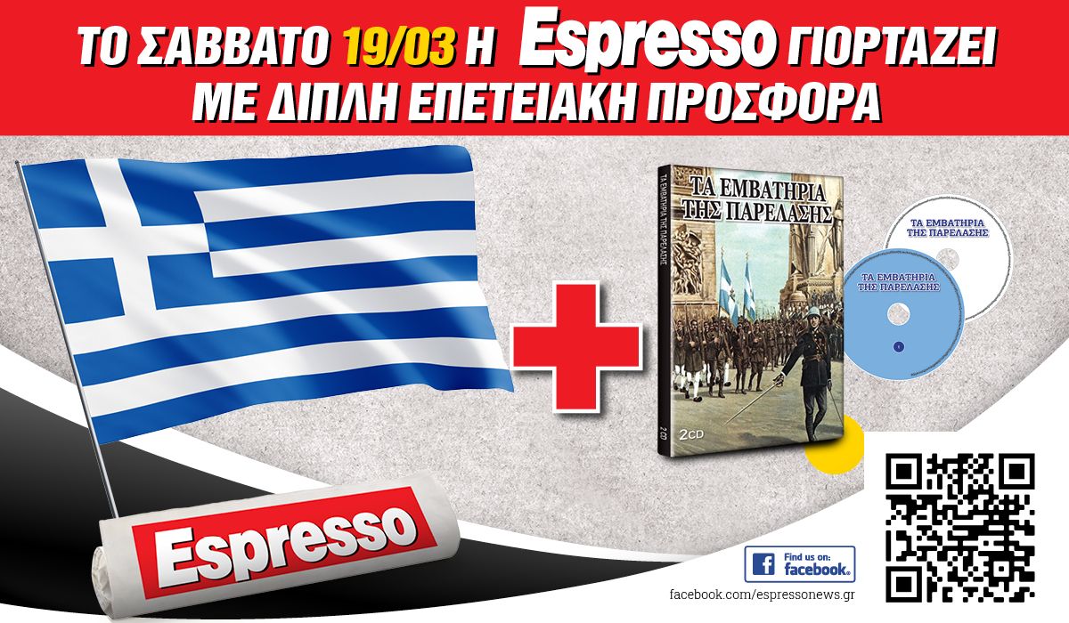 Το Σάββατο 19.03 με την Espresso: Γαλανόλευκη & εμβατήρια!