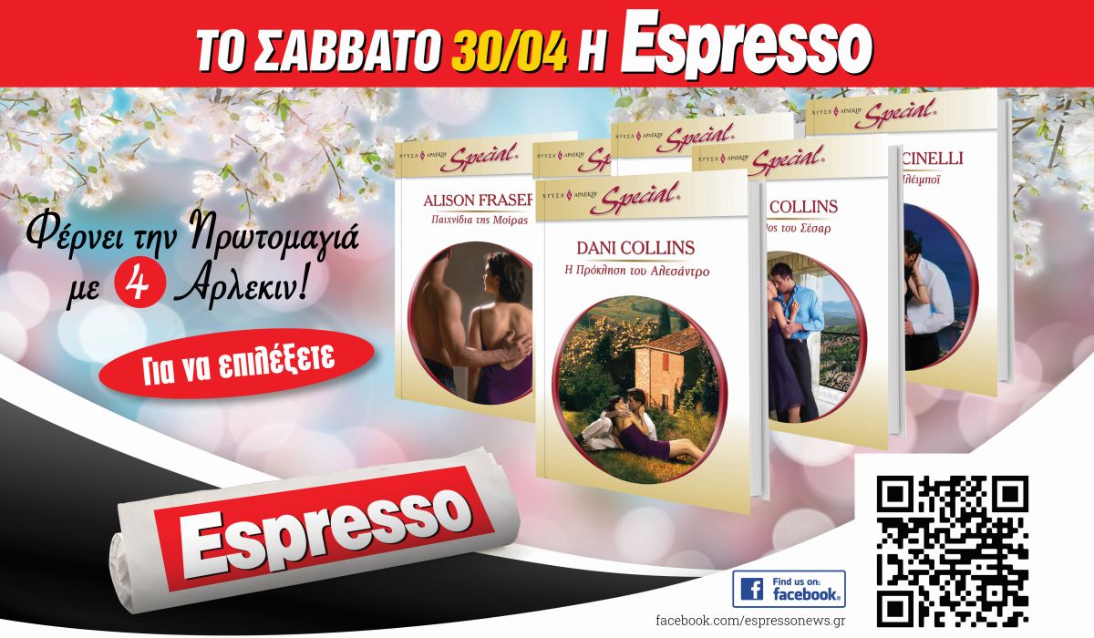 Το Σάββατο 30.04 η Espresso φέρνει την Πρωτομαγιά με 4 μοναδικά ΑΡΛΕΚΙΝ για να επιλέξετε, από τις σειρές Χρυσά, Special & Bianca!