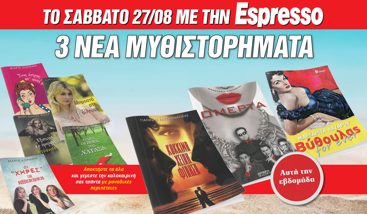 Το Σάββατο 27.08 με την Espresso: τρία νέα μυθιστορήματα για να επιλέξετε!