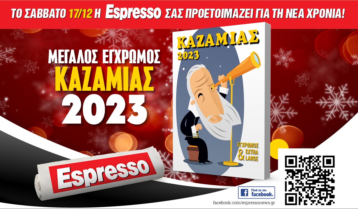 To Σάββατο 17.12 η Espresso σας προετοιμάζει για την νέα χρονιά, με τον μεγάλο έγχρωμο ΚΑΖΑΜΙΑ 2023!