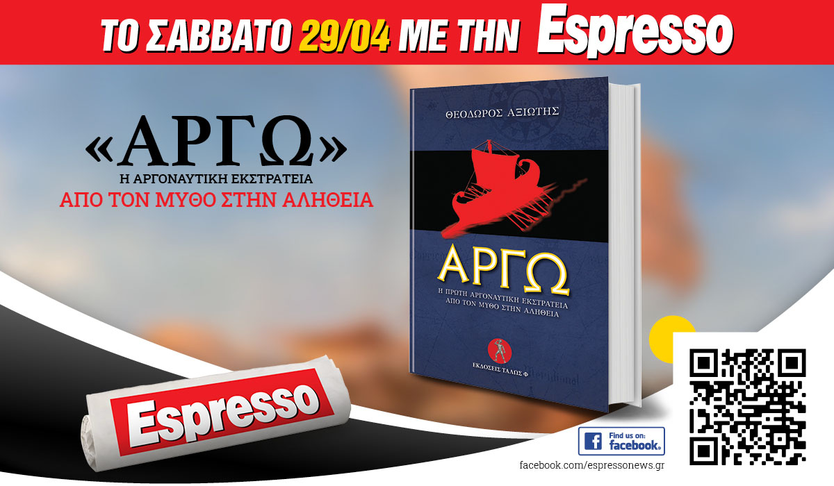 Μη χάσετε στις 29.04 με την Espresso Σαββατοκύριακο: ΑΡΓΩ • Η ΑΡΓΟΝΑΥΤΙΚΗ ΕΚΣΤΡΑΤΕΙΑ • ΑΠ ΤΟΝ ΜΥΘΟ ΣΤΗΝ ΑΛΗΘΕΙΑ