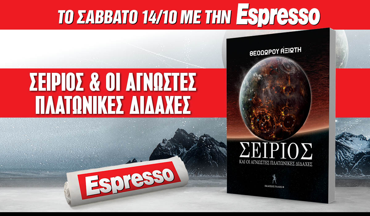 Μη χάσετε τo Σάββατο 14.10 με την Espresso το συγκλονιστικό βιβλίο: Σείριος και οι άγνωστες Πλατωνικές διδαχές