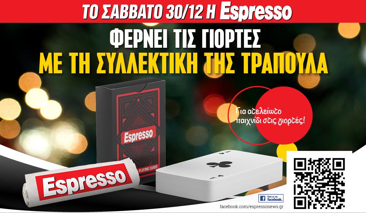 Το Σάββατο 30.12 η Espresso φέρνει τις γιορτές με την συλλεκτική της τράπουλα σε δύο χρώματα για ατελείωτο παιχνίδι!