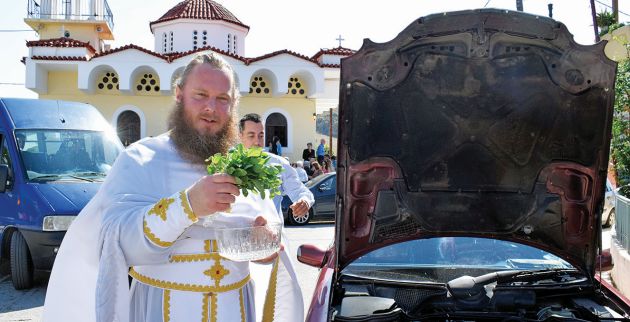 Ολοι οι οδηγοί περίμεναν υπομονετικά τη σειρά τους, καθώς είχαν τον ίδιο προορισμό, τον ναό του Αγίου Νεκταρίου, όπου ανήμερα του αγίου Χριστοφόρου θα αγιάζονταν οι ίδιοι και τα οχήματά τους.