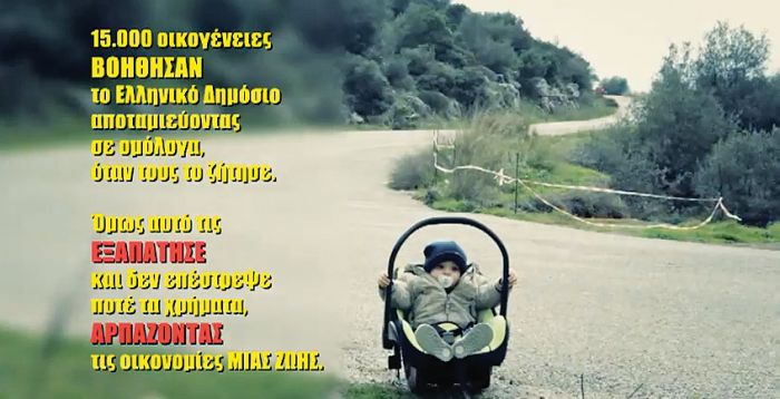 Οι μικροομολογιούχοι που έχασαν τα χρήματά τους από το «κούρεμα» εκφράζουν την αγανάκτησή τους με ένα συγκλονιστικό σποτ στο Διαδίκτυο.