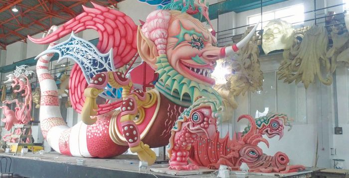 Καθώς το καρναβάλι ετοιμάζεται να ανοίξει αυλαία, οι πρώτες φωτογραφίες από τα άρματα που κατασκεύασε το καρναβαλικό εργαστήρι του δήμου, τα οποία αποτελούν αναπόσπαστο στοιχείο της γιορτής, κυκλοφόρησαν κλέβοντας ήδη τις εντυπώσεις. Εμπνευση, όπως πάντα, τα θέματα της επικαιρότητας. «Η Βασίλισσα», «Ο Γάτος», «Τα Μυρμήγκια και η Μέρκελ», «Το Χαράτσι της ΔΕΗ», «Greek Σουβλάκι», «Η Τούρτα των Προβλημάτων» και «Το Μουσικό Αρμα» θα είναι κάποια από τα άρματα που θα παρελάσουν στο κέντρο της πόλης και αφορούν στις πολιτικές και κοινωνικές συνθήκες των ημερών. Τα υπόλοιπα άρματα θα έχουν θέμα το «Πειρατικό Καράβι», τους «Μονομάχους και τη μικρή Γοργόνα», την «Μπάντα» και το «Τρένο». Τα βλέμματα αναμένεται να μαγνητίσει το σατιρικό άρμα «Τα Μυρμήγκια και η Μέρκελ» του Νίκου Λιβάνη και του Νεκτάριου Σαρηγιάννη, με τη Γερμανίδα καγκελάριο αναβάτρια πάνω σε μια τεράστια μπότα να κυνηγά να πατήσει τα μυρμήγκια, που δεν είναι άλλα από τις χώρες του ευρωπαϊκού Νότου. Ιταλία, Ισπανία, Πορτογαλία, Ελλάδα, Κύπρος, Μάλτα, Ιρλανδία αλλά και Γαλλία παίρνουν τη μορφή μυρμηγκιών που βρίσκονται στο έλεος της Μέρκελ, η οποία εξουσιάζει και συνθλίβει όλη την Ευρώπη. Η μπότα καταπατά νομίσματα ευρώ, ενώ πάνω από το κεφάλι της και πίσω από την μπότα προβάλλουν μια τράπεζα, που είναι η έδρα-σύμβολο του καπιταλισμού, και χαρτονομίσματα ευρώ.