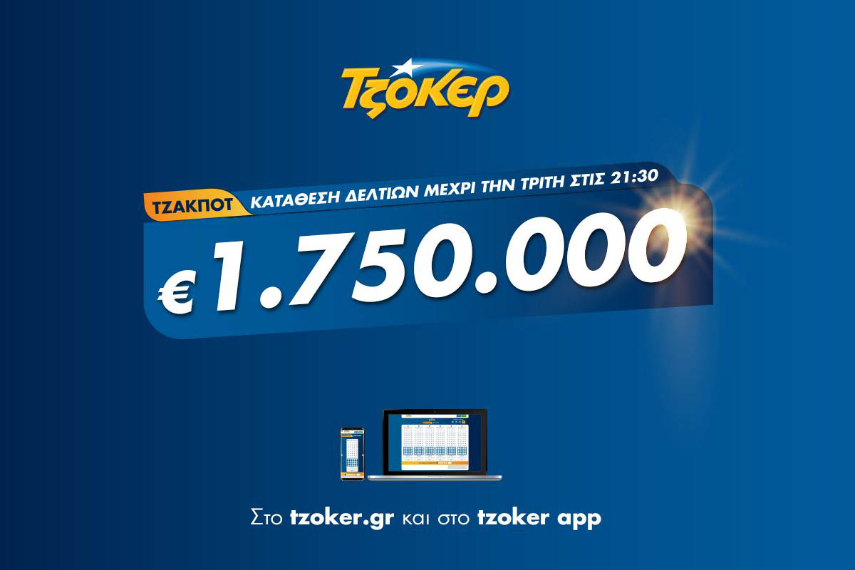 Η κλήρωση του ΤΖΟΚΕΡ θα πραγματοποιηθεί στις 22:00 και θα μεταδοθεί ζωντανά από το κανάλι του ΟΠΑΠ στο YouTube, την ιστοσελίδα του tzoker.gr και μέσω της εφαρμογής ΤΖΟΚΕΡ.