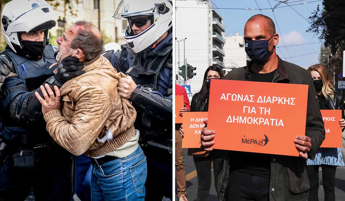 Ταλαιπώρησε χιλιάδες Αθηναίους, οι οποίοι στις δύσκολες συνθήκες που ζουν είχαν να αντιμετωπίσουν και το σόου του Βαρουφάκη. Ο Γιάνης Βαρουφάκης μαζί με έξι βουλευτές έφτασε στο Πολυτεχνείο λίγο μετά τις 12 το μεσημέρι κρατώντας πλακάτ τα οποία έγραφαν: «Αγώνας διαρκής για τη δημοκρατία» και «Η δημοκρατία δεν μπαίνει σε καραντίνα».