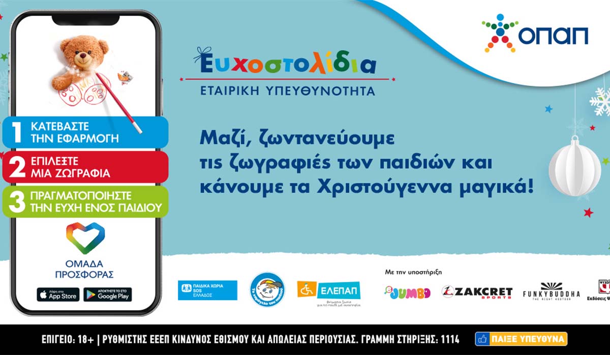 Η εκπλήρωση των ευχών έχει ήδη ξεκινήσει και γίνεται διαδικτυακά μέσω της εφαρμογής «Ομάδα Προσφοράς ΟΠΑΠ» και της ιστοσελίδας www.euxostolidia.gr.