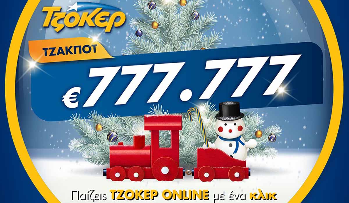 Χριστούγεννα με μποναμά 777.777 ευρώ από το ΤΖΟΚΕΡ θα κάνουν ένας ή περισσότεροι νικητές που θα κατορθώσουν να μαντέψουν σωστά τους 5+1 αριθμούς που θα βγάλει απόψε η κληρωτίδα. Όσοι επιθυμείτε να διεκδικήσετε το έπαθλο με τα πολλά 7άρια, μπορείτε να καταθέσετε το δελτίο σας έως τις 21:30 απόψε μέσω του tzoker.gr ή της εφαρμογής ΤΖΟΚΕΡ.