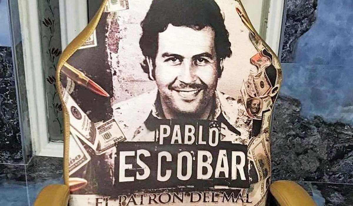 Το πρωί του Σαββάτου αστυνομικοί της Ασφάλειας και της Υποδιεύθυνσης Επιχειρησιακών Δράσεων Δυτικής Αττικής μαζί με άνδρες της ΟΠΚΕ έκαναν έφοδο στους καταυλισμούς σε Ζεφύρι και Μενίδι και, μεταξύ άλλων πειστηρίων, κατέσχεσαν μια καρέκλα γραφείου με πλαστικοποιημένη επένδυση στο χρώμα του… χρυσού, στην πλάτη της οποίας ήταν κολλημένη μια ταπετσαρία με τη φωτογραφία του Πάμπλο Εσκομπάρ σε φόντο με δολάρια και σφαίρες πολεμικού όπλου!