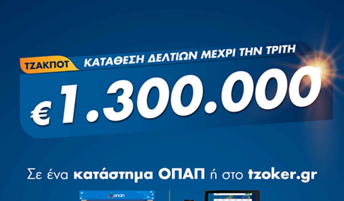 Κέρδη 1,3 εκατομμυρίων ευρώ αναμένεται να μοιράσει απόψε το τζακ ποτ του ΤΖΟΚΕΡ σε έναν ή περισσότερους νικητές της πρώτης κατηγορίας.