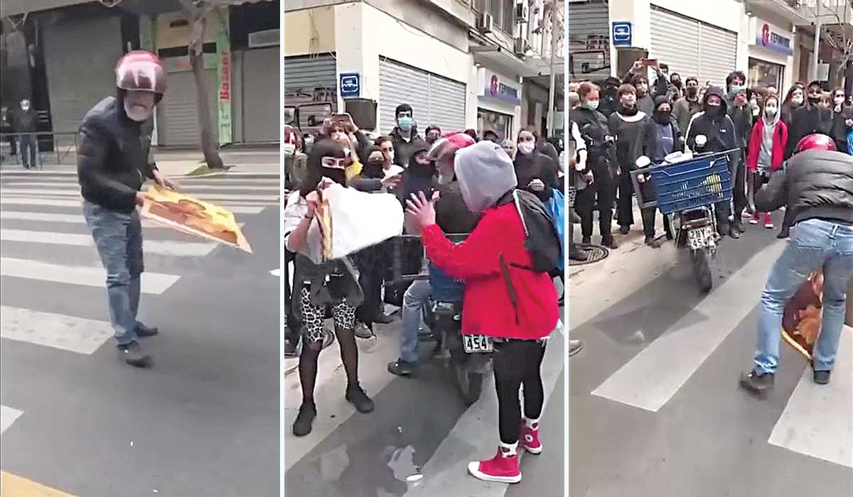 Την ίδια ώρα ο σαστισμένος μοτοσικλετιστής, όπως όριζε η συνείδησή του, προσπάθησε να μαζέψει τη σπασμένη εικόνα, ακόμα και τα κομμάτια της Παναγίας που είχαν σκίσει οι αλληλέγγυοι υπέρμαχοι των δικαιωμάτων, και τα έβαλε ξανά στο καλάθι της μηχανής του, ακούγοντας από το μέρος τους ειρωνείες του τύπου «Πάει ο άγιος, πάει η Παναγία μας». Ομως, το κακό δεν σταμάτησε εκεί, καθώς μια νεαρή με λεοπάρ σορτσάκι τού άρπαξε ακόμη και τα σκισμένα τμήματα της εικόνας της Παναγίας, τα ξέσκισε σε ακόμα μικρότερα, τα τσαλάκωσε και τα πέταξε σαν σκουπίδια στον δρόμο!