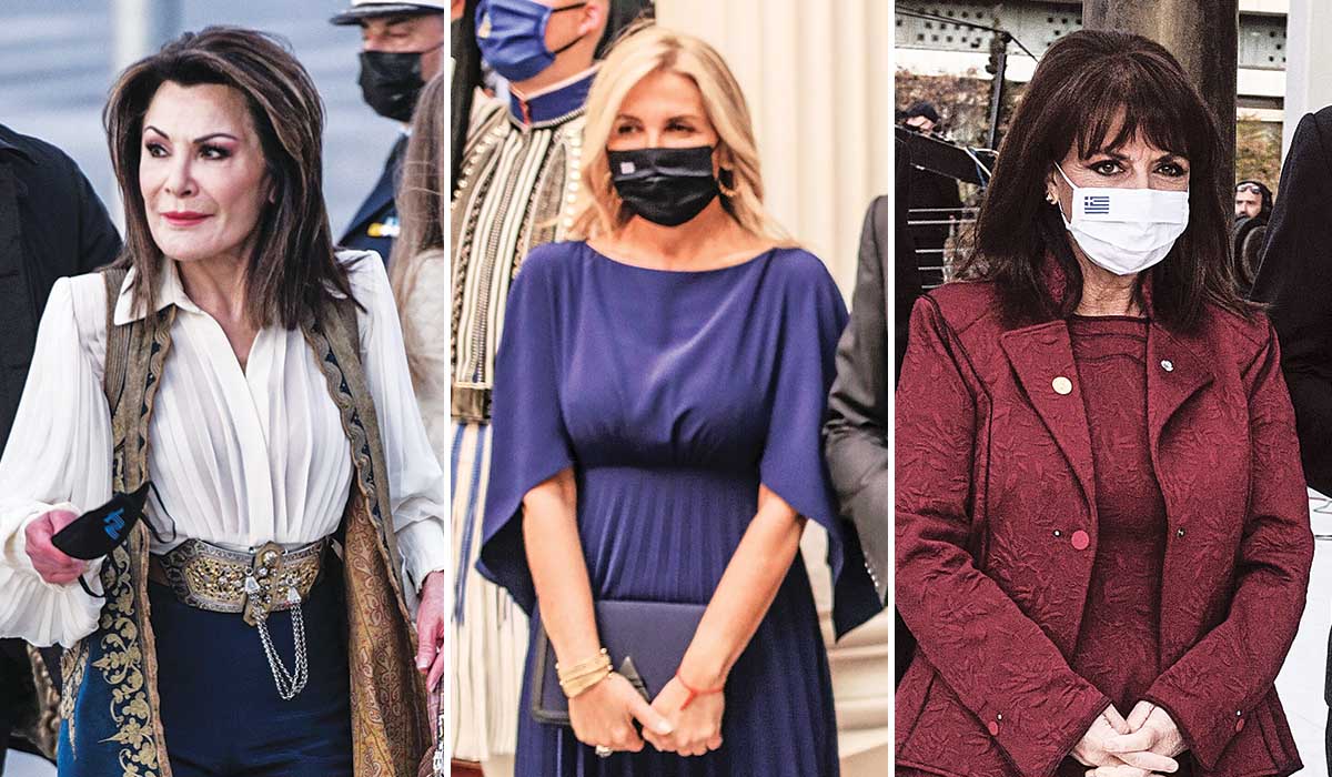 Η πρόεδρος της επιτροπής για το 1821 ήταν μια… κατηγορία μόνη της, αφού διάλεξε μόνο παραδοσιακό στιλ ανάμεικτο με σύγχρονα στοιχεία για τις υποχρεώσεις της, τόσο στα εγκαίνια της Πινακοθήκης όσο και στο δείπνο. Η διαφορά της με τις άλλες κυρίες ήταν ότι φορούσε το ίδιο και στις δύο εμφανίσεις της.