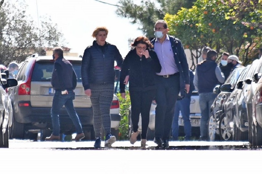 Η σύζυγος του γνωστού δημοσιογράφου κάτεβηκε αφού ολοκληρώθηκε η επιτόπια ιατροδικαστική εξέταση από το κλιμάκιο των αρχών, σύμφωνα με το protothema.gr. Υποβασταζόμενη από συγγενικά πρόσωπα, η Στάθα Καραϊβάζ βγήκε προκειμένου να δει το σημείο όπου έπεσε νεκρός ο σύζυγός της, ο οποίος δέχτηκε 6 σφαίρες από άγνωστους που του είχαν στήσει ενέδρα θανάτου, έξω από το σπίτι του.