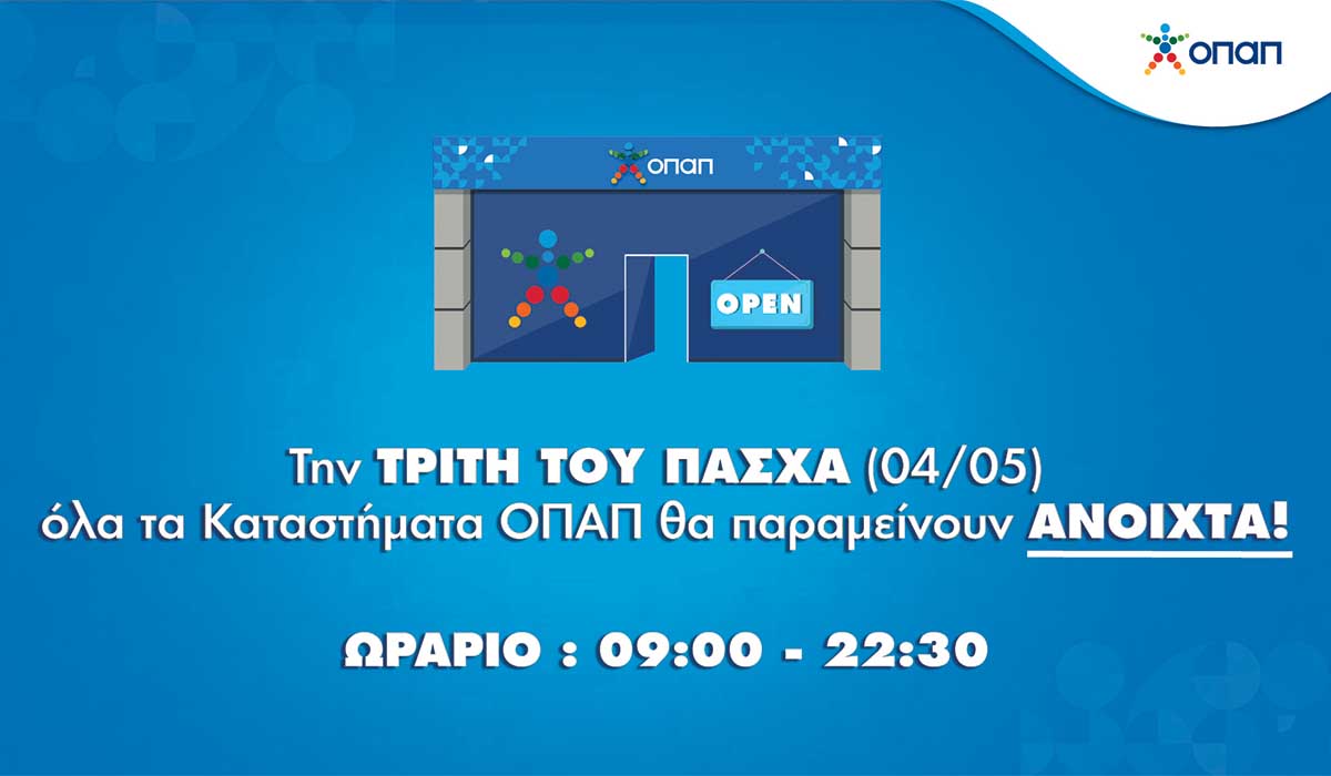 Ανοιχτά αύριο και κάθε μέρα τα καταστήματα ΟΠΑΠ από τις 9:00 έως τις 22:30