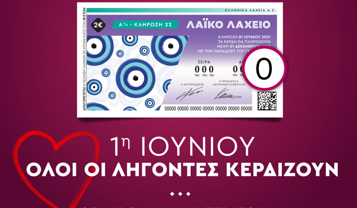 Λαϊκό Λαχείο: «Όλοι οι λήγοντες κερδίζουν» την Τρίτη 1η Ιουνίου