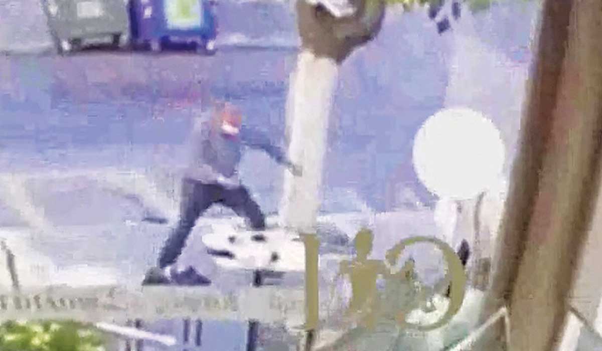 Η πρώτη επίθεση που έκανε ο ψυχοπαθής με τη ματσέτα ήταν στον ιδιοκτήτη ενός φούρνου, ο οποίος εκείνη την ώρα έπινε τον καφέ του έξω από το κατάστημά του. Ο 54χρονος του όρμησε και τον μαχαίρωσε στην πλάτη. Ακολούθησε μια σκηνή που περιέγραψε αυτόπτης μάρτυρας βγαλμένη από ταινία φρίκης: «Κοίταζε το μαχαίρι, σαν να μη συμβαίνει τίποτα» είπε ο αυτόπτης για τον δράστη, που στη συνέχεια σκάναρε με το βλέμμα του γύρω του για να βρει το επόμενο θύμα.