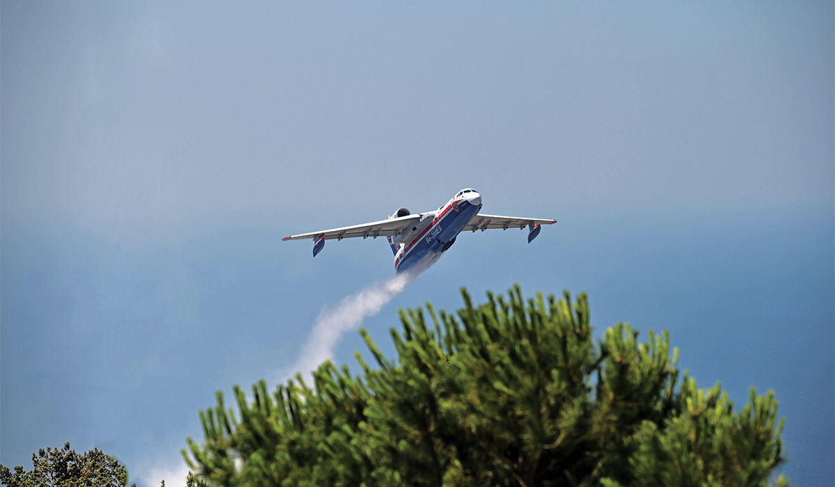 Αεροσκάφος Beriev-200 επιχειρεί στις φλόγες που απείλησαν οικισμούς