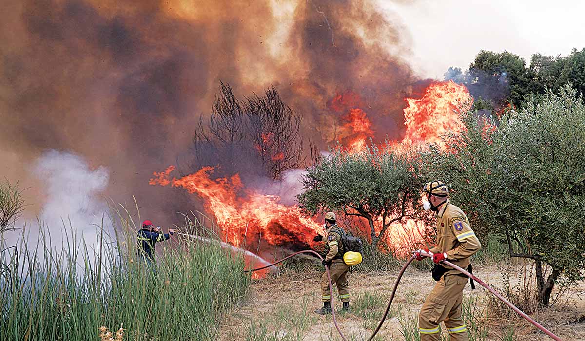 «Δεν έχουμε βοήθεια από πουθενά»! Ο παπα-Γιάννης Σιδέρης, εφημέριος στο χωριό Δάφνη στη βόρεια Εύβοια, δίνει τη μάχη ενάντια στις φλόγες. Εχει βγάλει τα ράσα και έχει φορέσει στολή παραλλαγής. Δίνει εντολές στις μπουλντόζες, συντονίζει τους πυροσβέστες και τους εθελοντές, που αγωνίζονται με νύχια και με δόντια να αντιμετωπίσουν την πύρινη λαίλαπα. «Μας έχουν ξεχάσει, δεν υπάρχουν εναέρια μέσα, η φωτιά είναι ανεξέλεγκτη» φωνάζει ο παπα-Γιάννης.