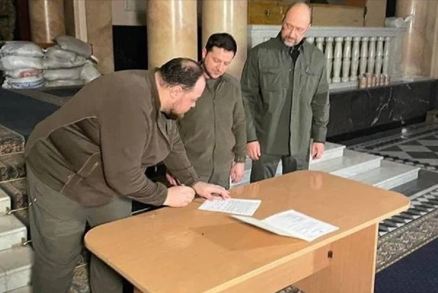 Το απόγευμα της Δευτέρας ο πρόεδρος της Ουκρανίας, Βολοντίμιρ Ζελένσκι υπέγραψε αίτηση για την ένταξη της Ουκρανίας στην Ευρωπαϊκή Ένωση. Την είδηση ανακοίνωσε το ουκρανικό κοινοβούλιο.