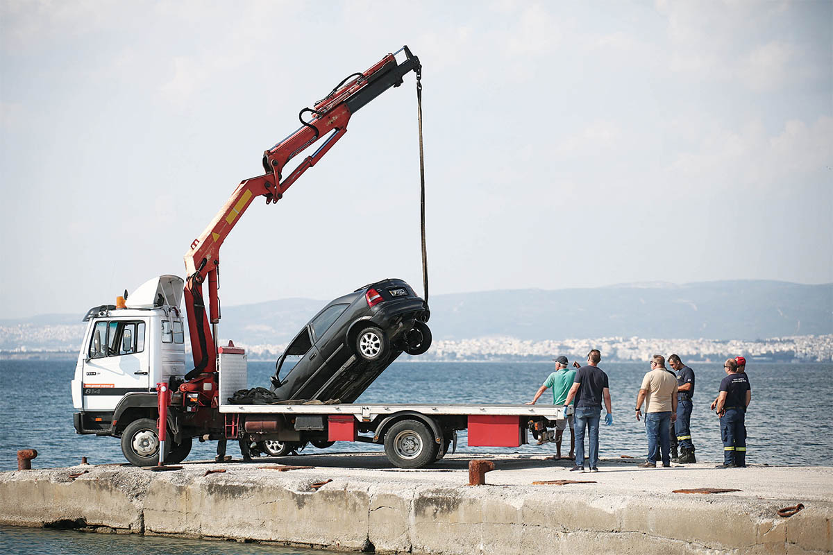 Σε οικογενειακή τραγωδία χωρίς προηγούμενο εξελίχθηκε η ανάσυρση του οχήματος από τη θάλασσα στον προβλήτα του αλιευτικού λιμένα Νέων Επιβατών στην ανατολική Θεσσαλονίκη, λίγο μετά τις 2 χθες το μεσημέρι, όταν οι βατραχάνθρωποι της ΕΜΑΚ διαπίστωσαν ότι μέσα βρίσκονταν δύο άνθρωποι δεμένοι με χειροπέδες μεταξύ τους και στο τιμόνι!