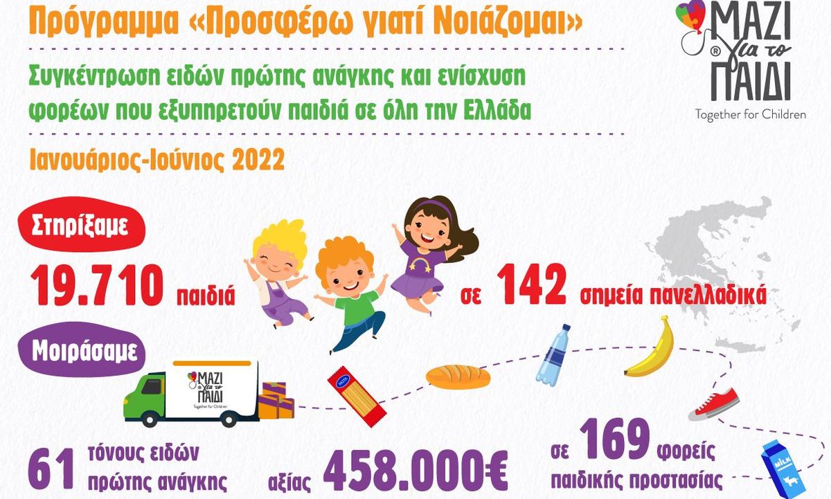 Η Ένωση «Μαζί για το Παιδί» στήριξε 19.710 παιδιά σε ανάγκη σε όλη την Ελλάδα το α΄εξάμηνο του 2022 μέσω του προγράμματος «Προσφέρω γιατί Νοιάζομαι».