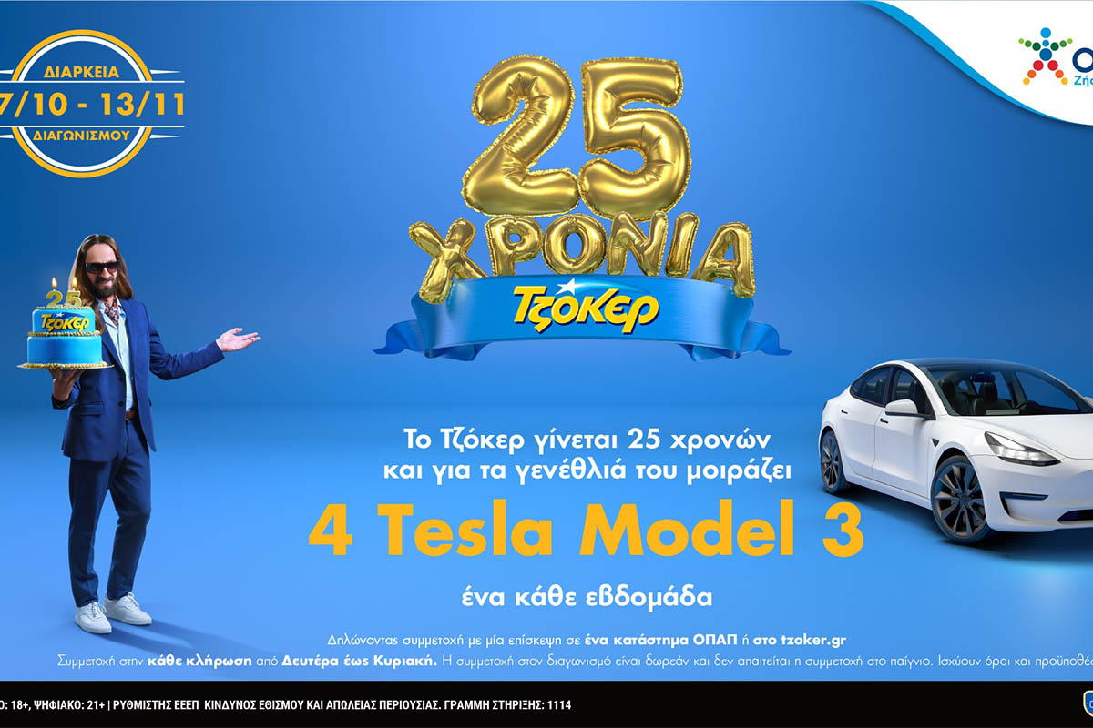Το ΤΖΟΚΕΡ γίνεται 25 χρόνων και γιορτάζει τα γενέθλιά του μοιράζοντας 4 αυτοκίνητα TESLA Model 3.