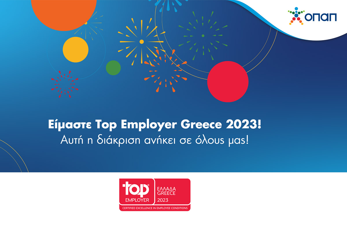Ανάμεσα στους κορυφαίους εργοδότες της χώρας συγκαταλέγεται ο ΟΠΑΠ, ο οποίος έλαβε την πιστοποίηση Top Employer Greece 2023. Η τιμητική αυτή διάκριση αναδεικνύει την αφοσίωση της εταιρείας στην ανάπτυξη και εξέλιξη των εργαζομένων της, σε ένα εργασιακό περιβάλλον που ξεχωρίζει. Επιπλέον, υπογραμμίζει τη στρατηγική επιλογή του ΟΠΑΠ να εφαρμόζει ολοκληρωμένες πολιτικές, με επίκεντρο την ενίσχυση της δέσμευσης των ανθρώπων του και την παροχή μιας μοναδικής εργασιακής εμπειρίας.