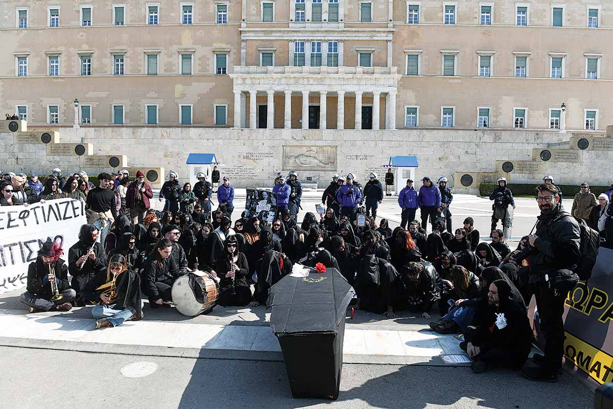 Ευφάνταστο θεατρικό δρώμενο: Καλλιτέχνες «κήδεψαν» τον πολιτισμό στο κέντρο της Αθήνας