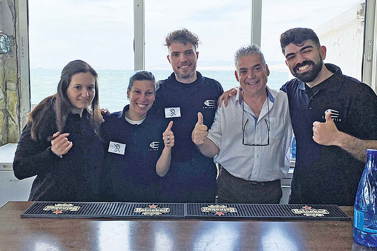 «Εχουμε μάθει ήδη πολλές λέξεις στη νοηματική με την καθημερινή συναναστροφή μας με τα παιδιά που έχουν προβλήματα ακοής, σερβιτόρους και μάγειρες, και ξέρουμε και μικρές φράσεις, κυρίως αυτές που αφορούν τις παραγγελίες στο τραπέζι και τα προϊόντα μας. Ολοι μας ξέρουμε -ακόμα και οι πιο νέοι στον χώρο- ότι οι ενωμένες παλάμες και το κούνημα του αντίχειρα παράλληλα με το έδαφος είναι το ψάρι» επισημαίνει ο επιχειρηματίας, που έβαλε τη σχετική αγγελία πριν από δύο χρόνια. Αυτή έλεγε ότι ζητούνται υπάλληλοι κωφοί, βαρήκοοι και άτομα με Σύνδρομο Down για θέσεις εργασίας στην ταβέρνα. Ο Γιώργος, με προβλήματα ακοής, ήταν ο πρώτος που έπιασε δουλειά. Διστακτικός στην αρχή, ρώτησε τον ιδιοκτήτη γιατί θέλει κωφούς και βαρήκοους, και η απάντηση ήταν αφοπλιστική: «Για να μπω στον κόσμο σου και να μπεις στον κόσμο μου».