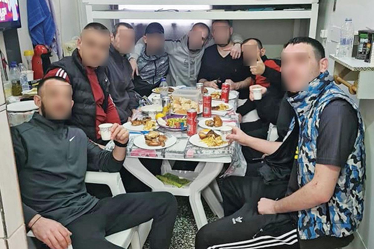 Κρατούμενοι φωτογραφίζονται ανενόχλητοι μέσα στα κελιά τους, ενώ ανεβάζουν φωτογραφίες και βίντεο στα social media. Σε μία από τις φωτογραφίες που δημοσίευσαν οι Data Journalists, οκτώ κρατούμενοι έχουν μαζευτεί στο κελί συγκρατούμενού τους, ο οποίος έχει τη γιορτή του.