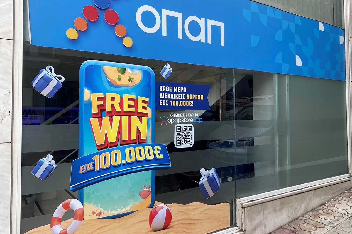 Το ραντεβού για το διασκεδαστικό και εντελώς δωρεάν FREEWIN, που χαρίζει μέχρι και 100.000 ευρώ, δίνεται καθημερινά στα καταστήματα ΟΠΑΠ. Μέσα από το OPAP Store App μπαίνεις κι εσύ στον μοναδικό κόσμο του FREEWIN και παίζεις τα κέρδη στα δάχτυλα.
