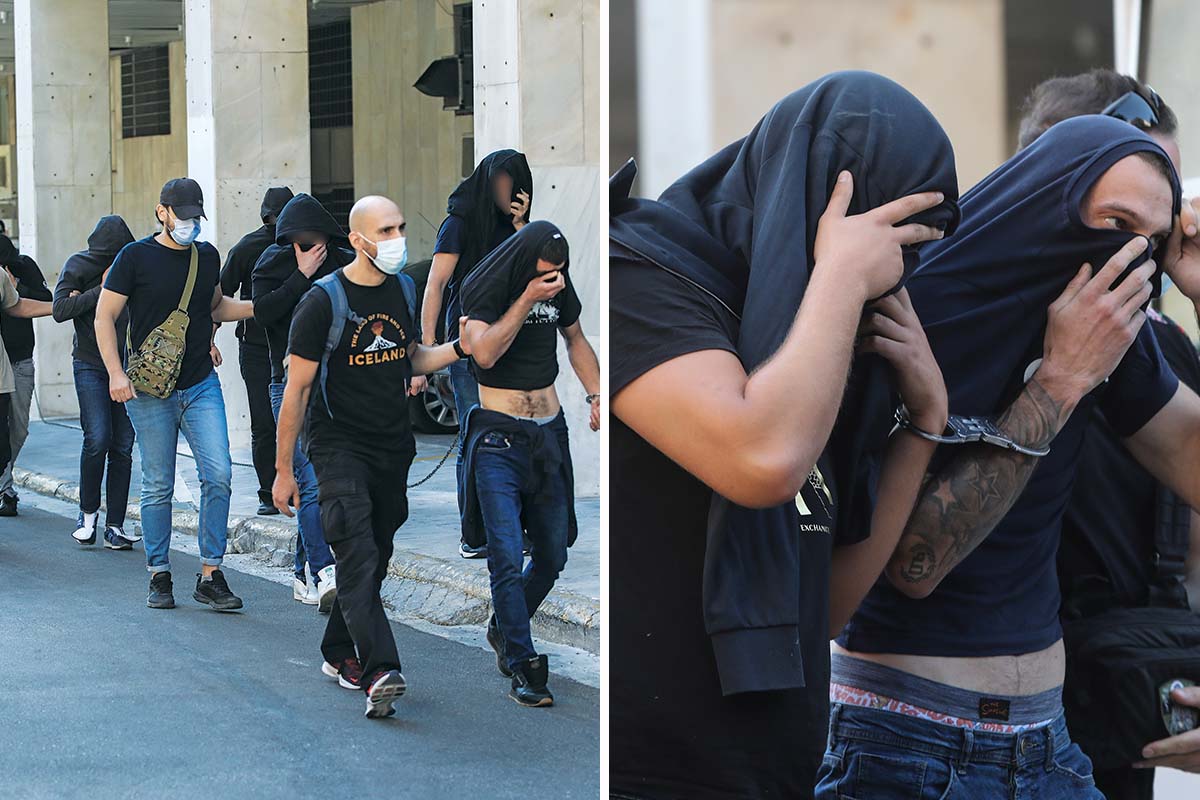 Από νωρίς το πρωί, δίπλα στο κτίριο 16, όπου στεγάζεται η Εισαγγελία, ήταν ακινητοποιημένες δύο κλούβες των ΜΑΤ, ενώ οι συλληφθέντες οδηγήθηκαν στα δικαστήρια με τρεις μεγάλες κλούβες και ένα βαν, συνοδεία μηχανών της Αστυνομίας και περιπολικών προς αποτροπή νέων επεισοδίων. Σε βάρος των 104 κατηγορούμενων χούλιγκαν (ο ένας εξ αυτών δεν εμφανίστηκε στον εισαγγελέα, καθώς νοσηλεύεται στο νοσοκομείο), τα ονόματα των οποίων περιλαμβάνονται στην ογκωδέστατη δικογραφία που έχει σχηματιστεί, ασκήθηκε δίωξη για τέσσερα κακουργήματα, μεταξύ των οποίων της σύστασης εγκληματικής οργάνωσης και της ανθρωποκτονίας από πρόθεση, ενώ οι συλληφθέντες βαρύνονται επιπλέον για επτά πλημμελήματα, όπως επικίνδυνη σωματική βλάβη, τετελεσμένη και σε απόπειρα, από κοινού κατά συρροή, φθορά ξένης ιδιοκτησίας, βιαιοπραγία (αδίκημα του αθλητικού νόμου), παράνομη οπλοφορία κ.ά. Η δίωξη για το αδίκημα της ανθρωποκτονίας δεν προσωποποιήθηκε από τις εισαγγελικές Αρχές, καθώς αναμένονται οι ιστολογικές έρευνες και τα αποτελέσματα του DNA.