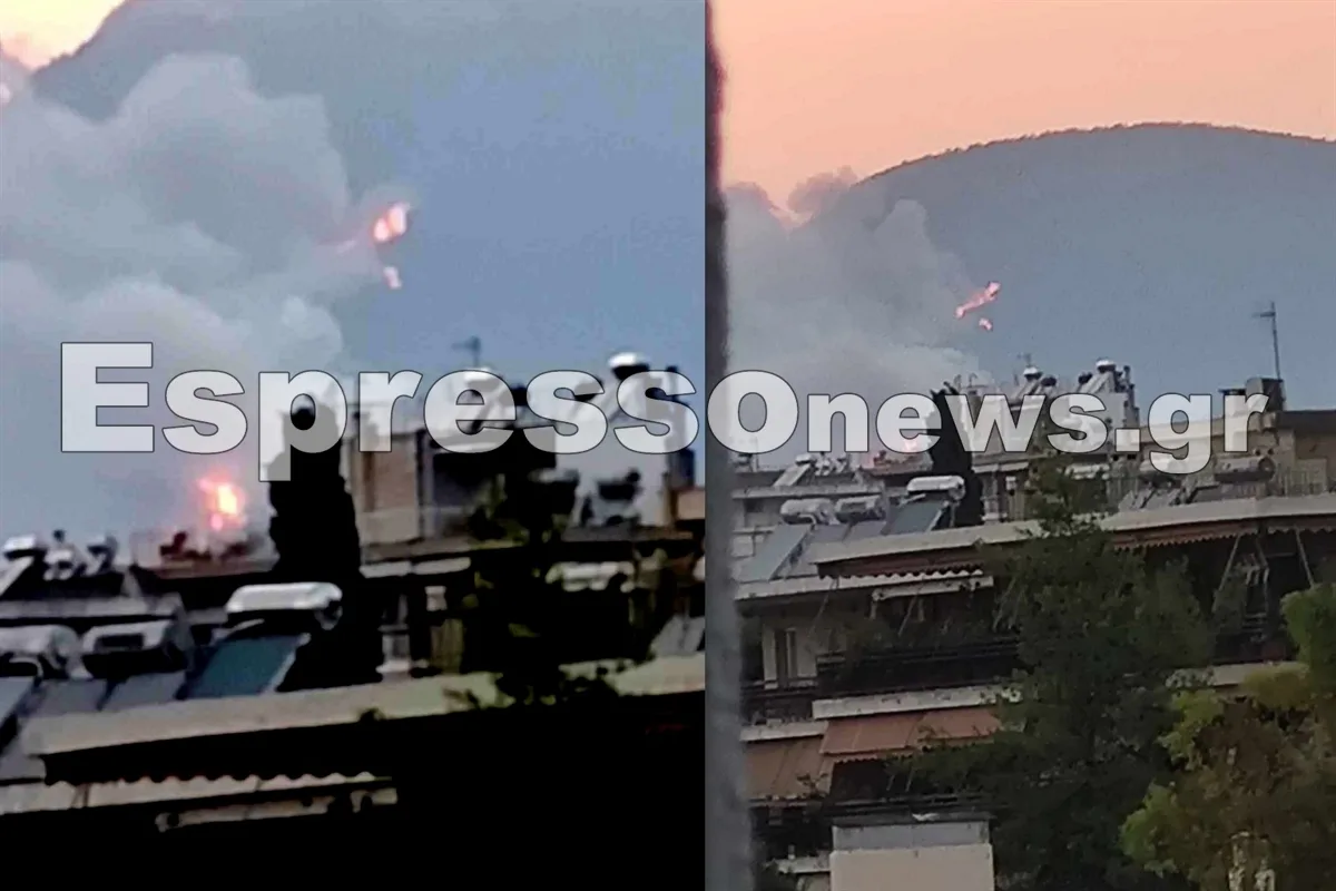 Αποκλειστικό βίντεο ήρθε στα χέρια μας όπου κάτοικος του Αμαρουσίου καταγράφει από το μπαλόνι του τη φωτιά να κατεβαίνει από την Πάρνηθα.