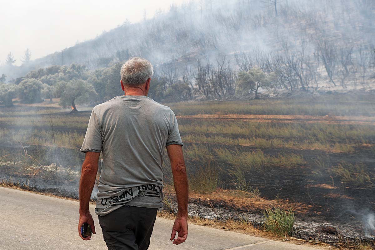 Κάτοικος της περιοχής μπροστά στα καμένα