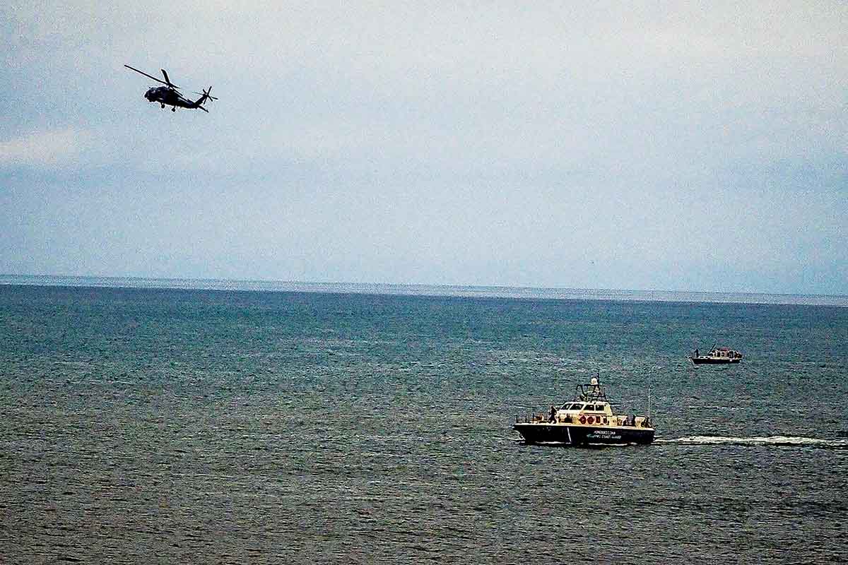 Στην περιοχή επιχειρούσαν χθες πλωτά σκάφη του Λιμενικού Σώματος, καθώς επίσης ιδιωτικά σκάφη, ενώ ελικόπτερο Super Puma, που μετέβη στο σημείο από την 111 Πτέρυγα Μάχης της Πολεμικής Αεροπορίας, πραγματοποιούσε ως το απόγευμα αεροναυαγοσωστική επιχείρηση. Επιπλέον, κινητοποιήθηκε μονάδα υποβρύχιων αποστολών (ΜΥΑ), προκειμένου να συνδράμει τις έρευνες.