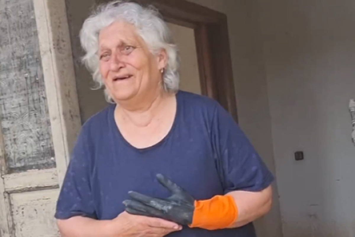 Η Αλεξάνδρα Καψαλά τράβηξε σε βίντεο την ηλικιωμένη, η οποία με την έξι μηνών εγγονούλα της μένει σε ένα σπίτι γεμάτο νερά και λάσπες. Η ίδια εξήγησε πως προσπαθούσε από την Πέμπτη να το καθαρίσει από τις λάσπες, όμως η απόγνωση στο βλέμμα της ήταν εμφανής. Μάλιστα, εξήγησε πως η κόρη της έχει πεθάνει και φροντίζει μόνη της το μωρό, σε ένα σπίτι που θυμίζει βομβαρδισμένο τοπίο.