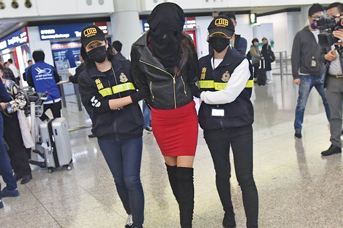 Το μοντέλο κατά τη σύλλυψή του στο αερόδρομιο του Χονγκ Κονγκ