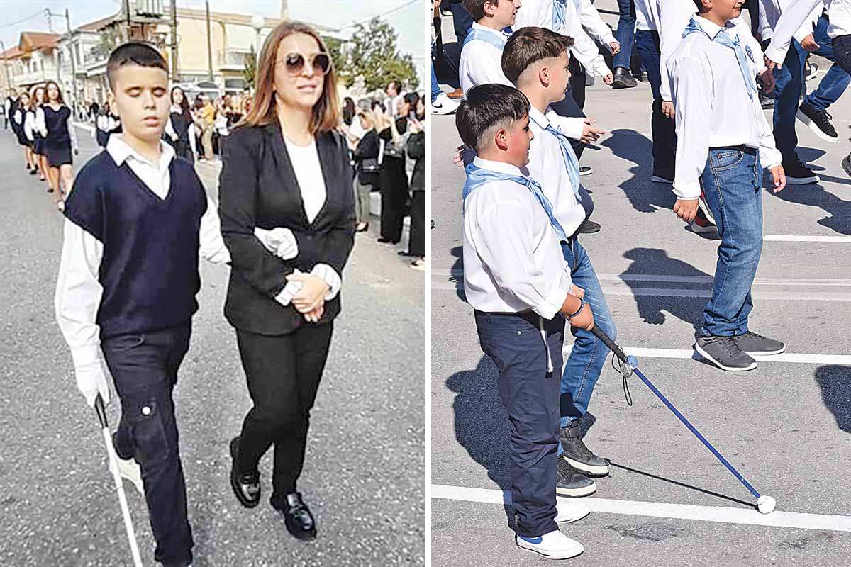 Δάκρυα συγκίνησης και θερμά χειροκροτήματα για τους μαθητές με προβλήματα όρασης που συμμετείχαν στις μαθητικές παρελάσεις για την 28η Οκτωβρίου στο Αγρίνιο και στην Καλαμαριά.