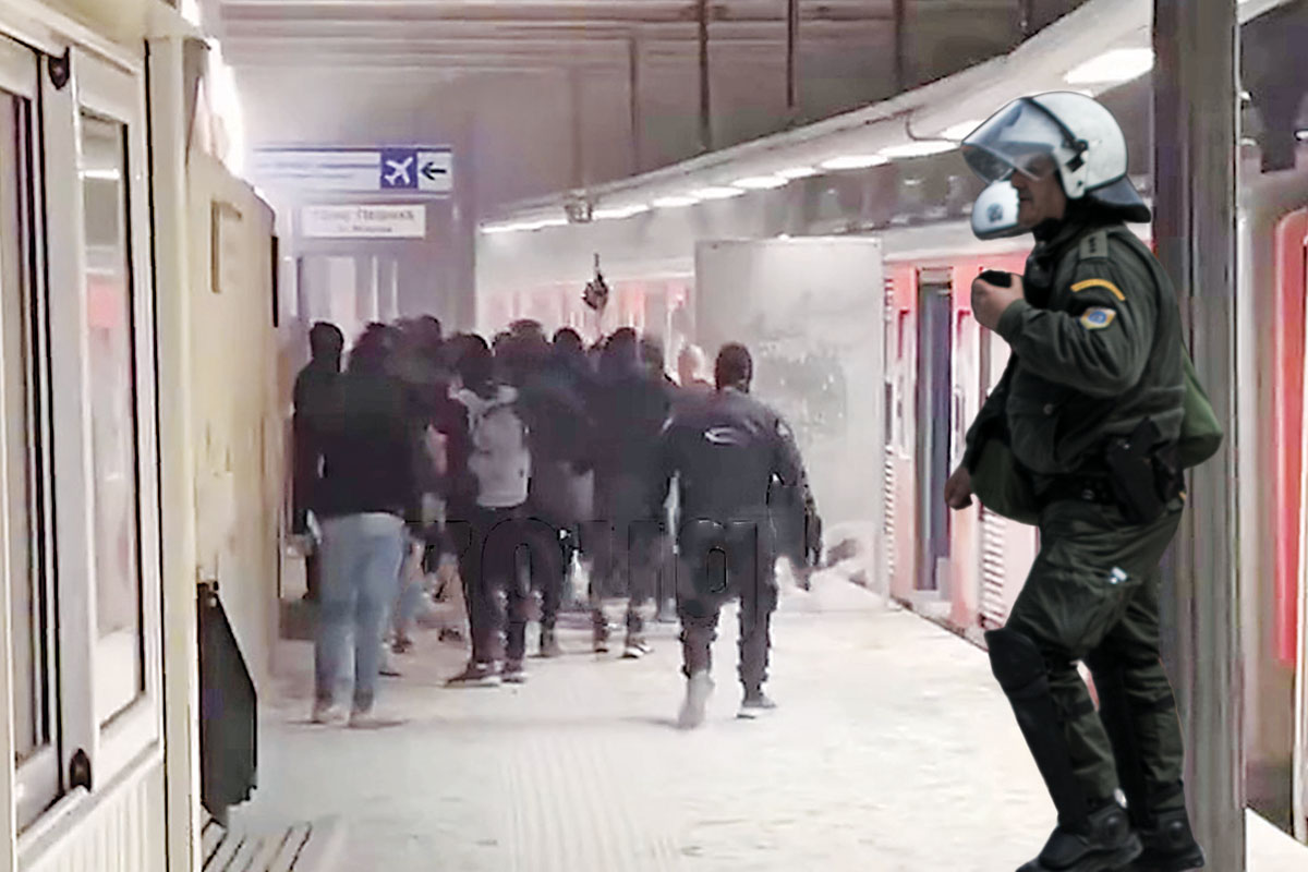 Μάταια μια διμοιρία των ΜΑΤ προσπάθησε -κατόπιν εορτής- να τους ακολουθήσει καθυστερημένα μέσα σε επόμενο συρμό του ηλεκτρικού, θυμίζοντας την ίδια εγκληματική καθυστέρηση που είχαν δείξει οι αστυνομικές δυνάμεις και πριν από τη φονική συμπλοκή στη Νέα Φιλαδέλφεια, που στοίχισε τη ζωή του 29χρονου φιλάθλου της ΑΕΚ Μιχάλη Κατσουρή…
