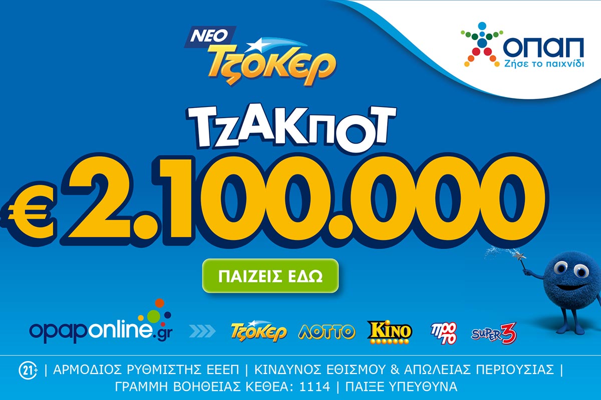 Τζακ ποτ 2,1 εκατ. ευρώ απόψε από το ΤΖΟΚΕΡ και 100.000 ευρώ σε κάθε νικητή της δεύτερης κατηγορίας