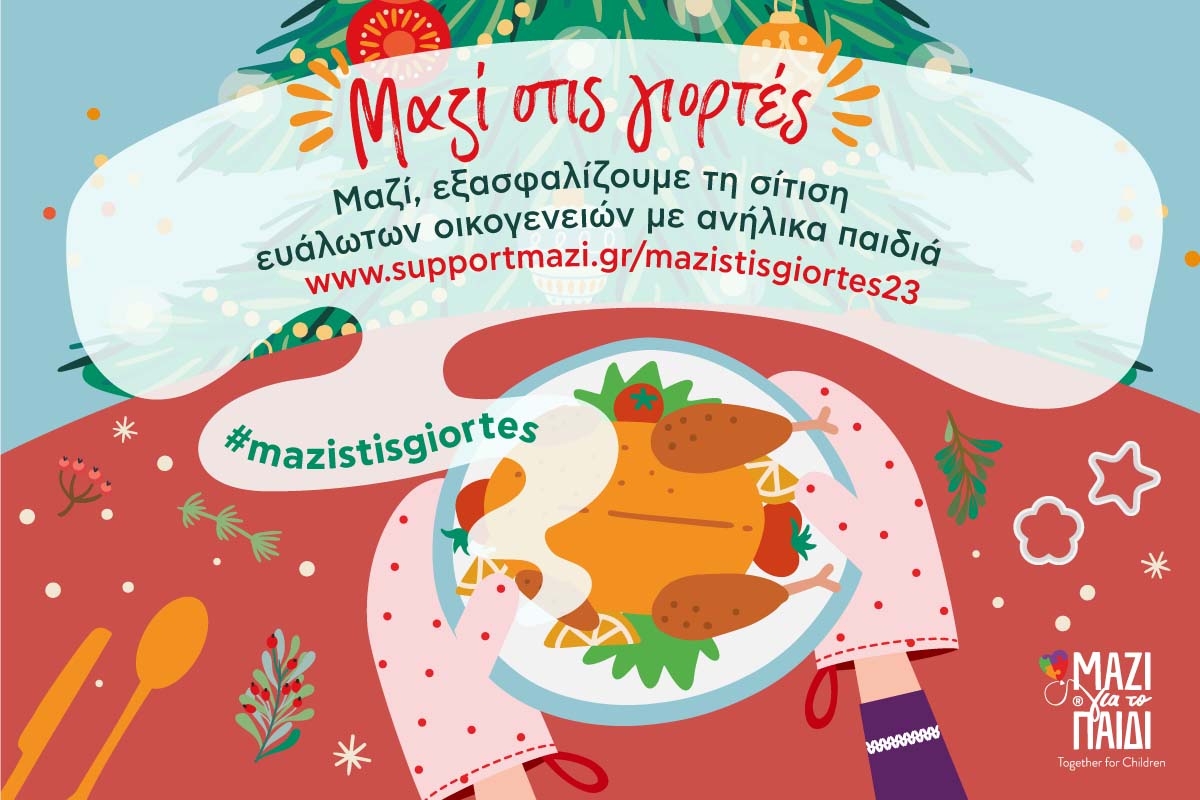 Σας ενθαρρύνουμε να εμπνεύσετε και άλλους να συμμετέχουν σε αυτή τη δράση προσφοράς με ανάρτηση στο Facebook ή το Instagram χρησιμοποιώντας το hashtag #mazistisgiortes και κάνοντας tag το «Μαζί για το Παιδί» @mazigiatopaidi.