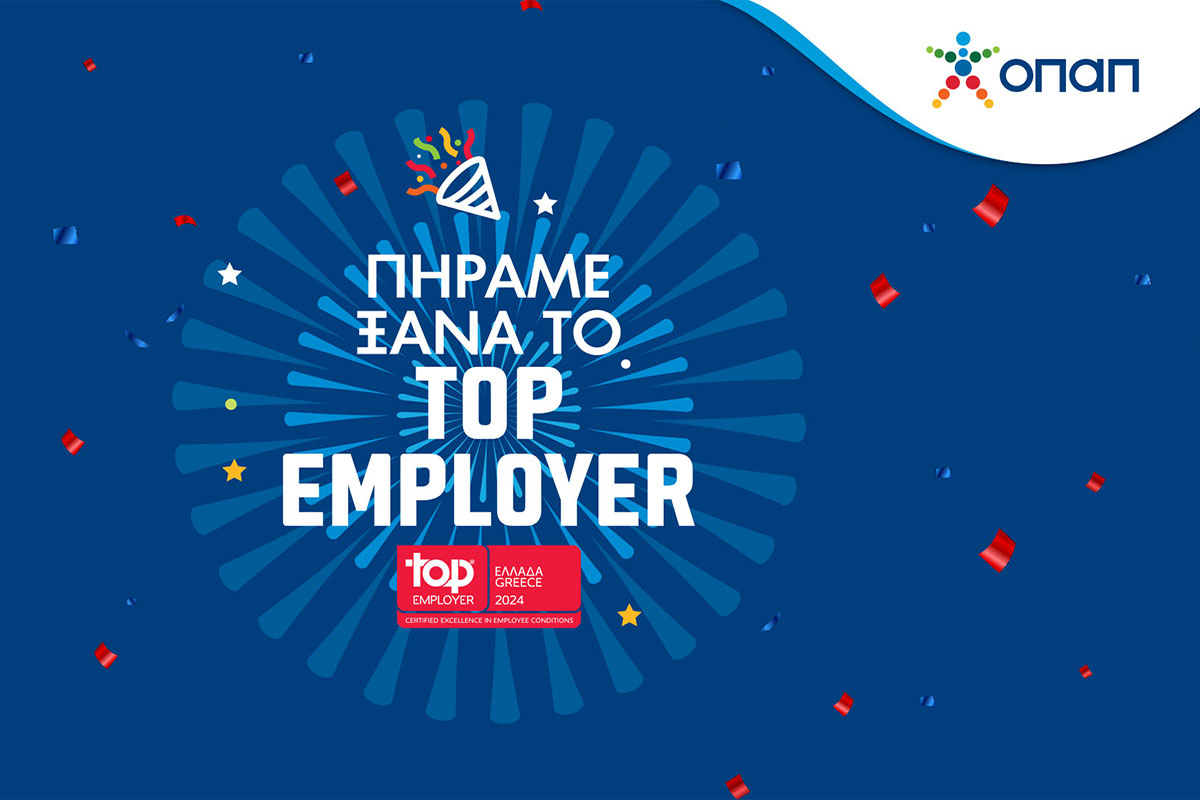 Ανάμεσα στους κορυφαίους εργοδότες στην Ελλάδα, για δεύτερη συνεχή χρονιά, περιλαμβάνεται ο ΟΠΑΠ, ο οποίος απέσπασε την πιστοποίηση Top Employer Greece 2024.