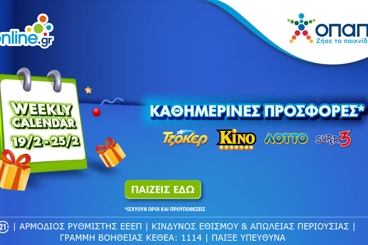 Καθημερινές διαδικτυακές προσφορές* σε όλα τα παιχνίδια αριθμών του ΟΠΑΠ μέχρι την Κυριακή