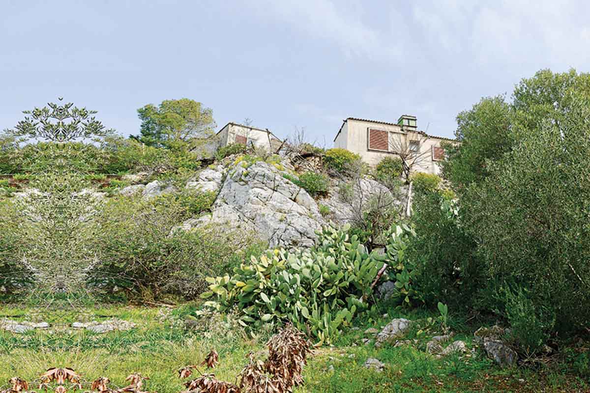 «Θα περιμένουν μάλλον επισκέπτες» σκεφτόμαστε και συνεχίζουμε τη βόλτα μας. Πιο κάτω, αφήνουμε την άσφαλτο και παίρνουμε έναν κατηφορικό χωματόδρομο. Δεν οδηγεί πουθενά, παρά μόνο κάνει βόλτες στην πλαγιά του λόφου, ενώ από κάτω ξεδιπλώνεται η θέα της Αθήνας. Ωστόσο, αποζημιωνόμαστε σαν αντικρίζουμε την εξής εικόνα: πάνω δεξιά, ανάμεσα στους βράχους, στους θάμνους, στα δέντρα και στις φραγκοσυκιές, εμφανίζονται οι στέγες σπιτιών, σαν να ξεπροβάλλουν από το πουθενά. Μα, αυτό ακριβώς δεν είναι ο λόφος και ο οικισμός του; Ενας θησαυρός, μια έκπληξη, ένα κατοικημένο μέρος στη μέση τού πουθενά, καταπράσινο και άγριο, περιμένοντας να το ανακαλύψεις!