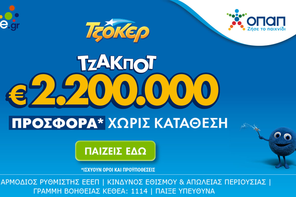 Τουλάχιστον 2,2 εκατ. ευρώ στην αποψινή κλήρωση του ΤΖΟΚΕΡ