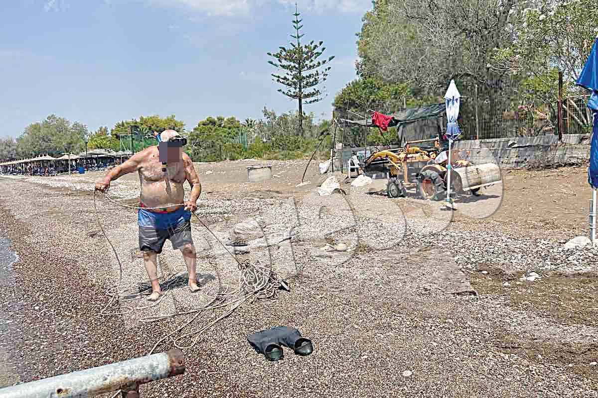 Ομως ένας ηλικιωμένος κάτοικος της περιοχής, με το επιχείρημα ότι «είναι η περιοχή του», έκανε με πρόχειρες κατασκευές παρεμβάσεις στην παραλία, σαν να πρόκειται για ιδιωτική, προκειμένου να… βολεύεται στο μπάνιο του. Για τον λόγο αυτό μετέφερε μέχρι και έναν μικρό εκσκαφέα για να βγάλει μεγάλες πέτρες από την παραλία και να στήσει ράμπα, προκειμένου να μπαίνει και να βγαίνει από το νερό.