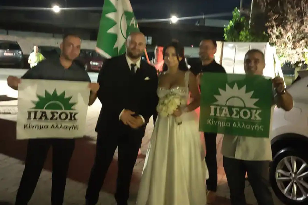 Ωστόσο, οι καλεσμένοι θα θυμούνται για πολύ καιρό την ατμόσφαιρα που δημιουργήθηκε στο τραπέζι του γάμου, η οποία θύμιζε εποχές παλιού… ΠΑΣΟΚ! Και αυτό γιατί το νεόνυμφο ζευγάρι, αντί για κάποιο γνωστό hit της εποχής, επέλεξε το τραγούδι που έχει συνδεθεί όσο κανένα άλλο με το ΠΑΣΟΚ, ενώ η είσοδός του συνοδεύτηκε και από καπνογόνα, βεγγαλικά και σημαίες του κόμματος, που ενθουσίασαν τους καλεσμένους. Η βραδιά απαθανατίστηκε από τον Λεωνίδα Αθανασάκη, ο οποίος μοιράστηκε φωτογραφίες στα social media και ευχήθηκε στο ζευγάρι βίον «ανθόσπαρτον», με τις εικόνες να αποτυπώνουν τη χαρά των παρευρισκομένων.