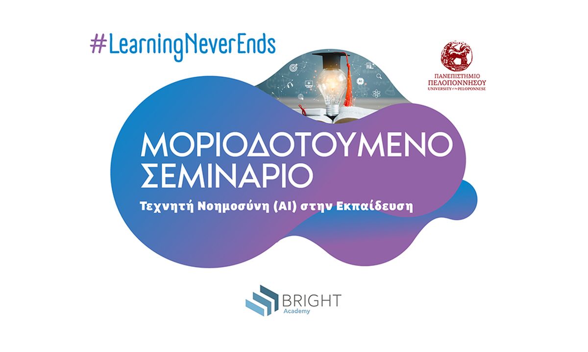 Στον τομέα της εκπαίδευσης η ΑΙ έχει ήδη ανοίξει νέους ορίζοντες στον τρόπο που διδάσκονται και μαθαίνουν οι μαθητές. Η ενσωμάτωση της στα συστήματα εκπαίδευσης έχει δημιουργήσει προοπτικές για νέες μεθόδους διδασκαλίας.  Στο πλαίσιο των νέων προκλήσεων, το Πανεπιστήμιο Πελοποννήσου σε συνεργασία με την Bright Academy σχεδίασαν και παρουσιάζουν το επιμορφωτικό πρόγραμμα «Τεχνητή Νοημοσύνη (ΑΙ) στην Εκπαίδευση».